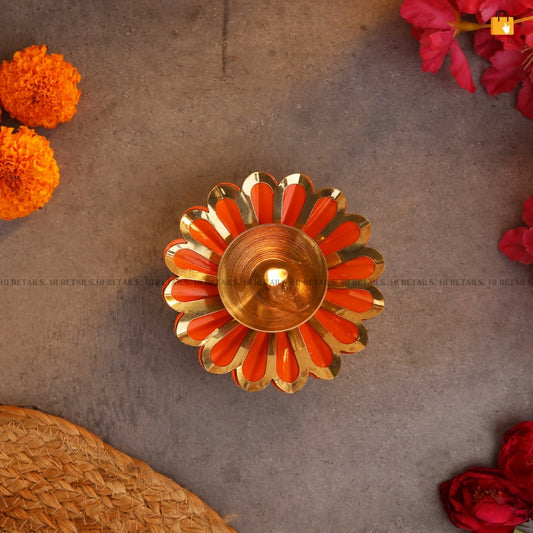 Brass Flower Akhand Diya Puja & Home Temple, Pack of 1