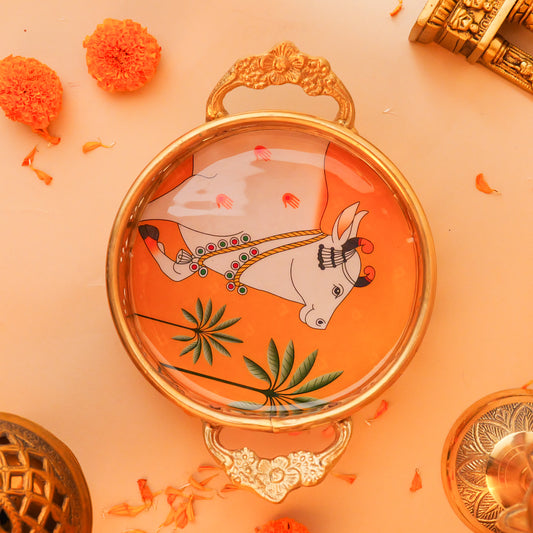 Handmade Pichwai Art Cow Design Serving Tray Plates