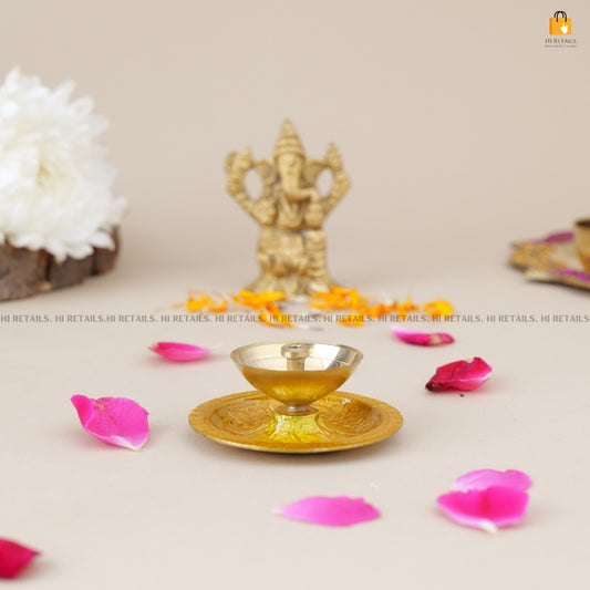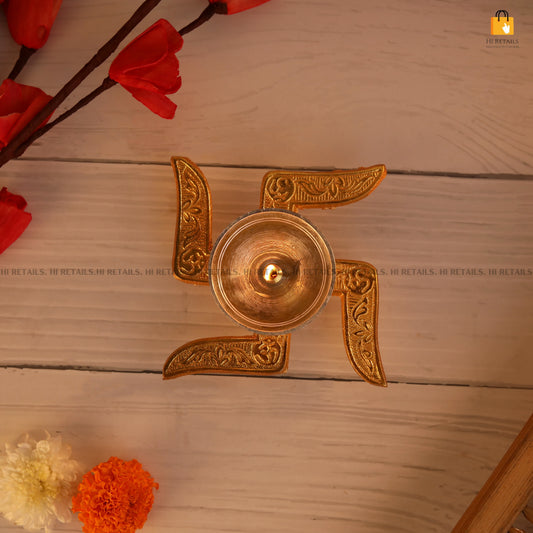 Swastik Brass Diya with Box - Oil Lamp for Pooja & Decor