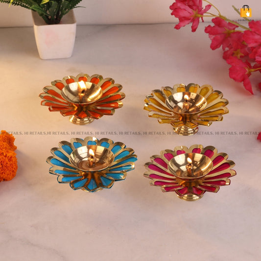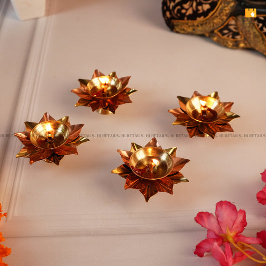 Brass Flower Akhand Diya Home Temple & Puja 4pcs