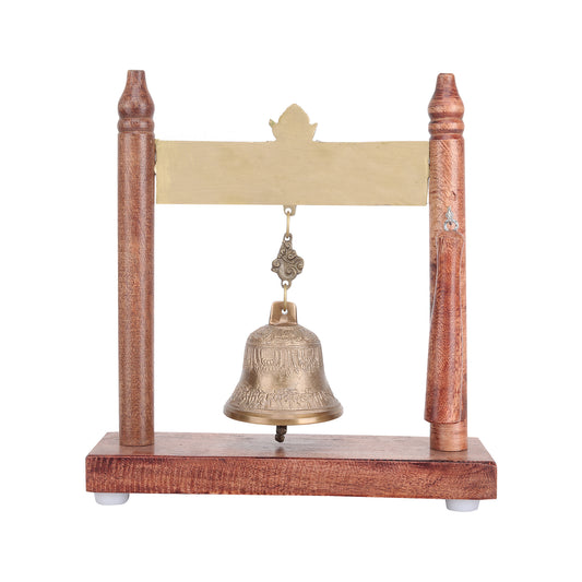 Brass Wooden Stand Table Bell For Home & Office Decor