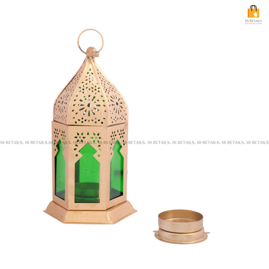 Green Brass Round Hanging Lantern