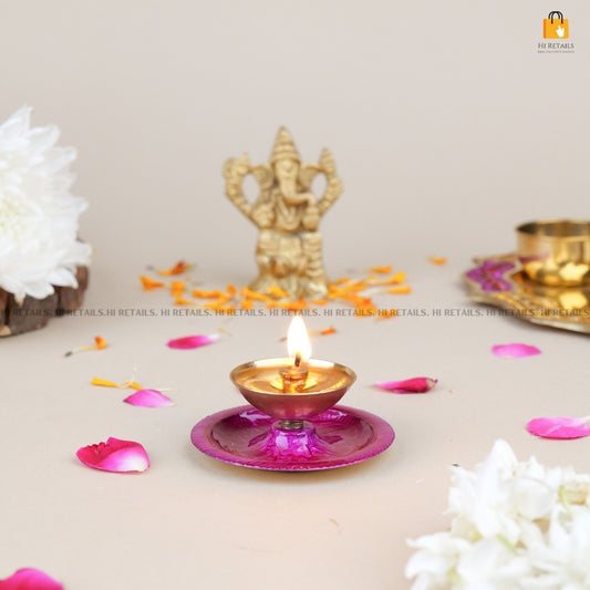 Pink Brass Akhand Diya Jyot for Home & Festival Decor