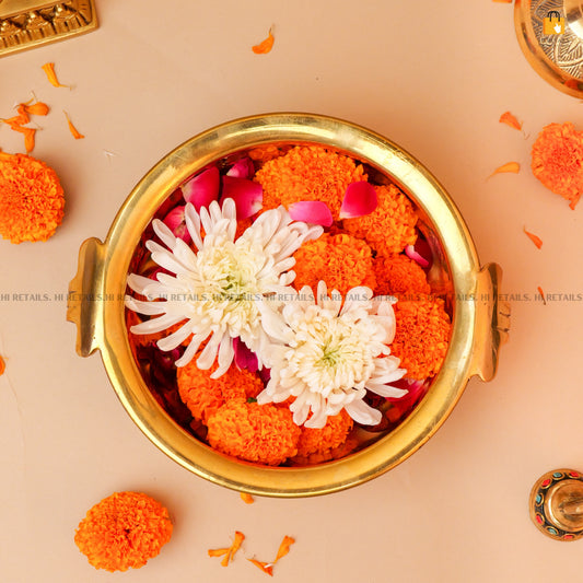Designer Brass Urli Bowl for Home Decor 8 inch