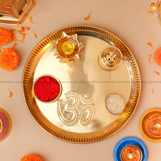Puja Thali Set with Diya, Incense Holder & Kumkum Box