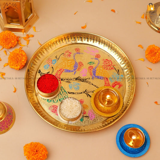 Pure Brass Peacock Pooja Thali, Plate, 8 Inches